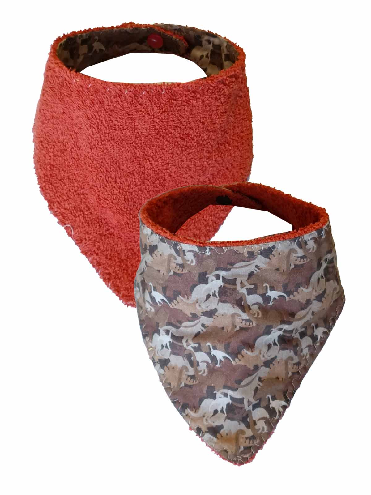Bandanas baberos reversibles para bebes , por un lado tela por el otro felpa. Cierre con clip.