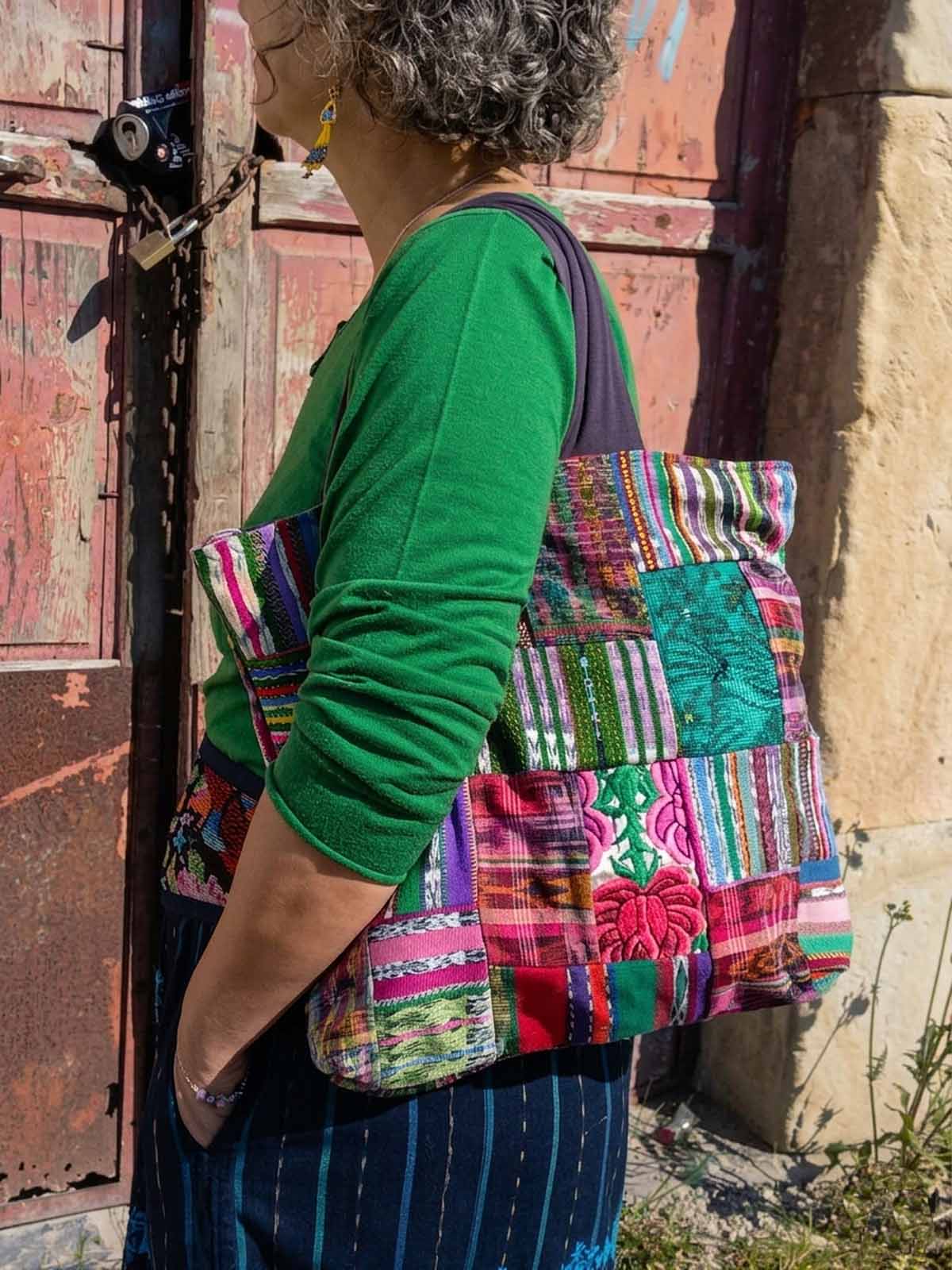 Confeccionado con textil de Guatemala hecho a mano. Patchwork de Huipil y Corte.